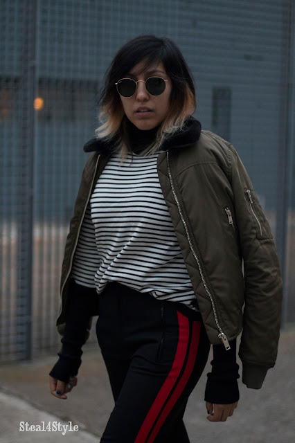 El pantalón con franja lateral es un must y la bomber huelga decir que ya es casi un clásico! un beso!!